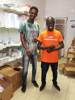 The arrival of the container preludes busy times for our store team, the next stop in our Hospital Tour, working at the Pharmacy and the Big Store, the last one now overflowing with boxes. Ibrahim Tholley and Samdix Alimamy Conteh serve as the Storekeeper and Assistant Storekeeper, respectively. They are responsible for supplying items to the various wards and the dispensary to support the hospital’s daily operations. In addition, they assist with logistics management and are in charge of procuring all required items, both within and outside the facility. Currently, they are taking care of counting, registering, and properly storing all medications and other supplies that came with the container.
